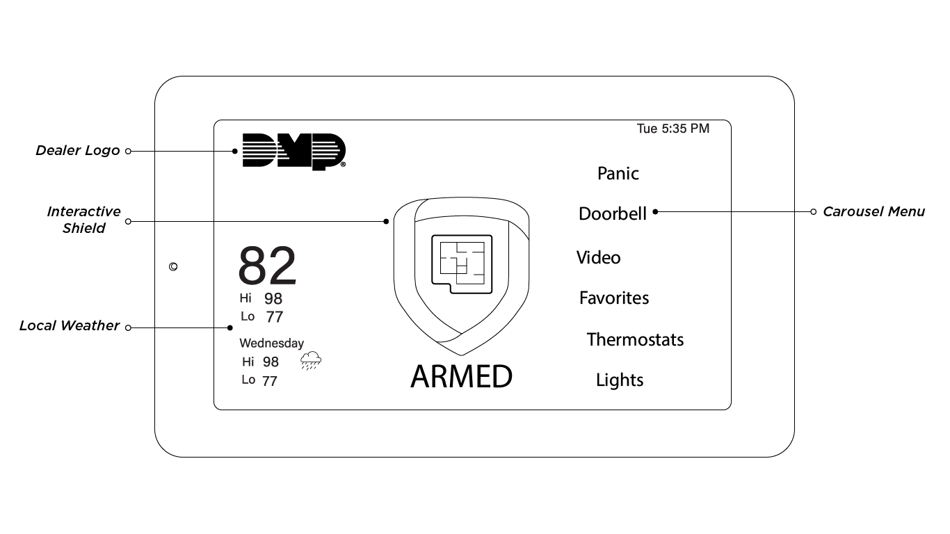 On the 5-Inch Touchscreen Keypad, use the navigation arrows to scroll through the Carousel menu options. On the 7-Inch Touchscreen Keypad, press and drag to scroll through the Carousel menu options.